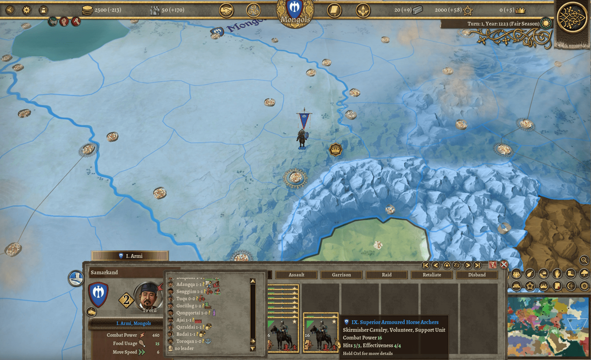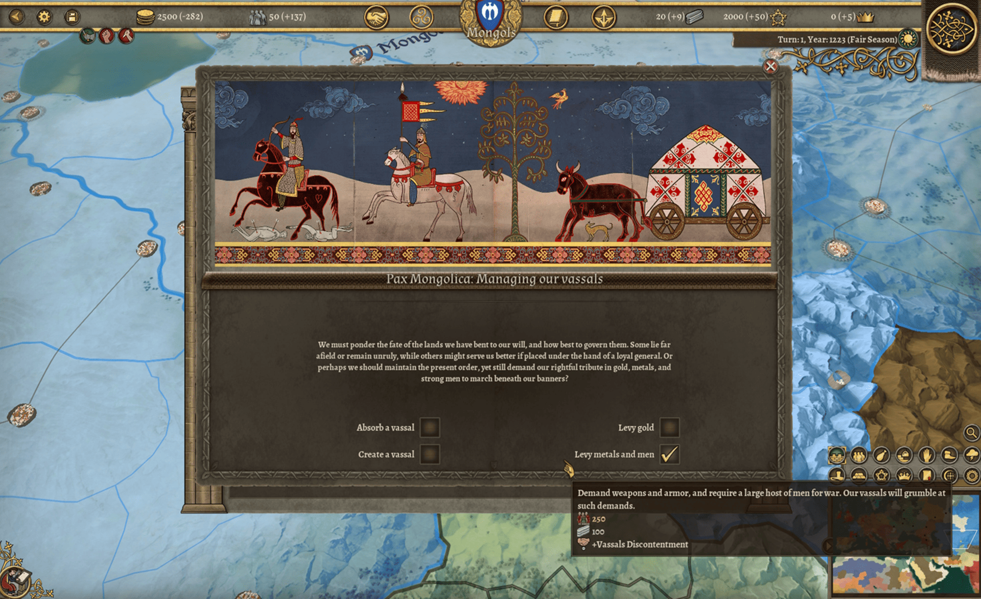 The Mongols have more than a dozen diverse multi-choice events, several of them focused on their formidable warlords, men of great ability but also of difficult temperament, whose ambitions must be handled with care.